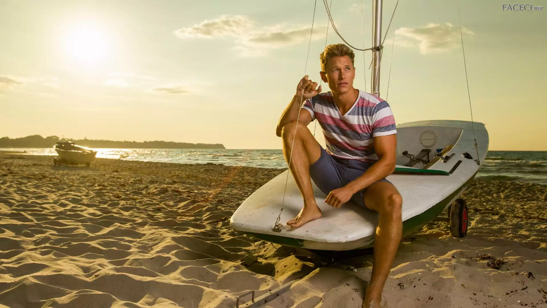 Piasek, Morze, Model, Mężczyzna, Plaża, Łódka - faceci.biz